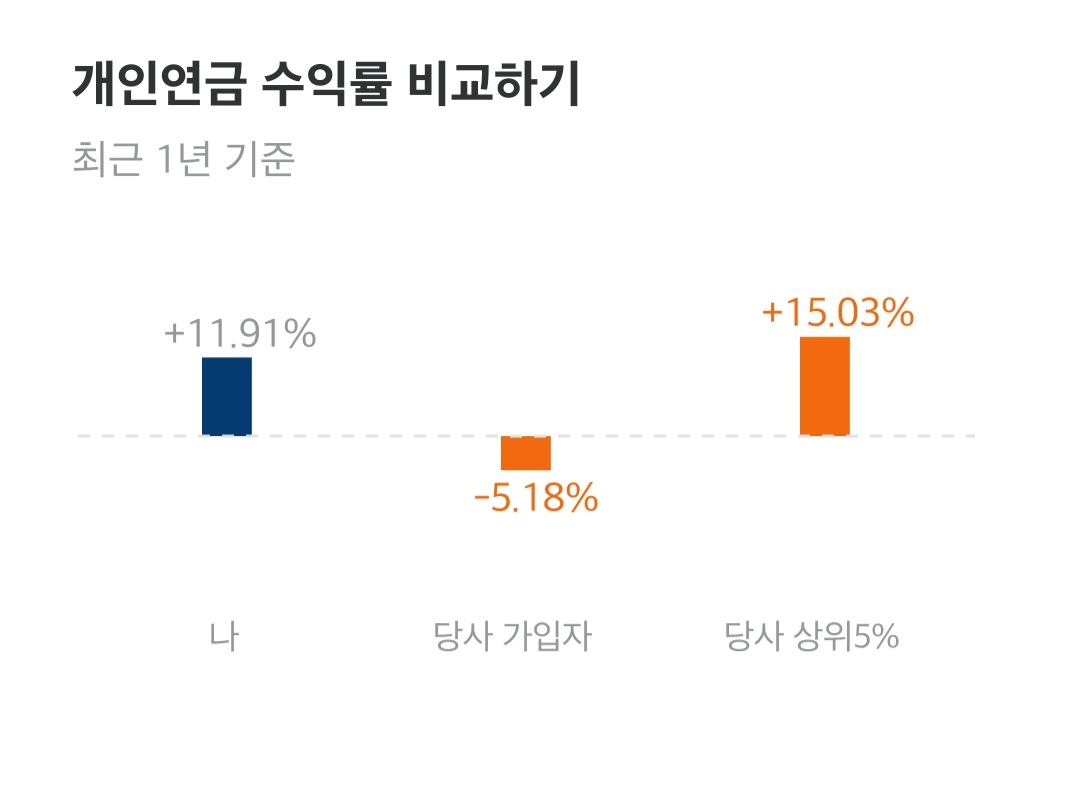 아래 표는 지난 1년간 미래에셋 연금저축 가입자중에 내가 어느 정도의 위치를 하고 있는지를 보여 준다.
